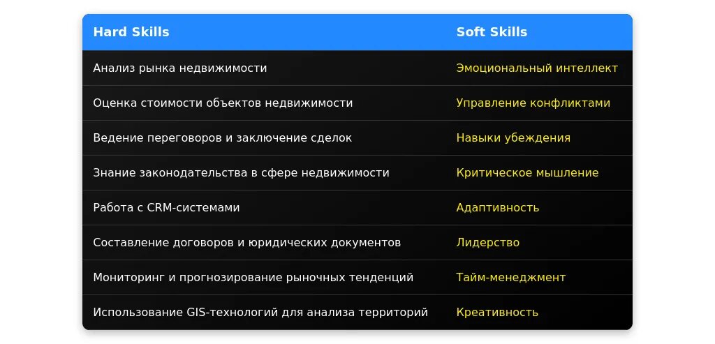 После адаптации: "Навыки ведения переговоров с клиентами и партнерами в сфере недвижимости."