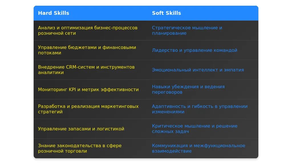 При анализе вакансии важно выделить ключевые требования, которые разделяются на обязательные и желательные. Обязательные требования обычно включают опыт работы в схожих должностях, знание специфики розничной сети, умение управлять командой и достигать KPI. Желательные требования могут включать владение CRM-системами, знание английского языка или опыт работы в международных компаниях. Обращайте внимание на формулировки: если работодатель указывает "обязательно" или "необходимо", это явный сигнал о важности данного требования.