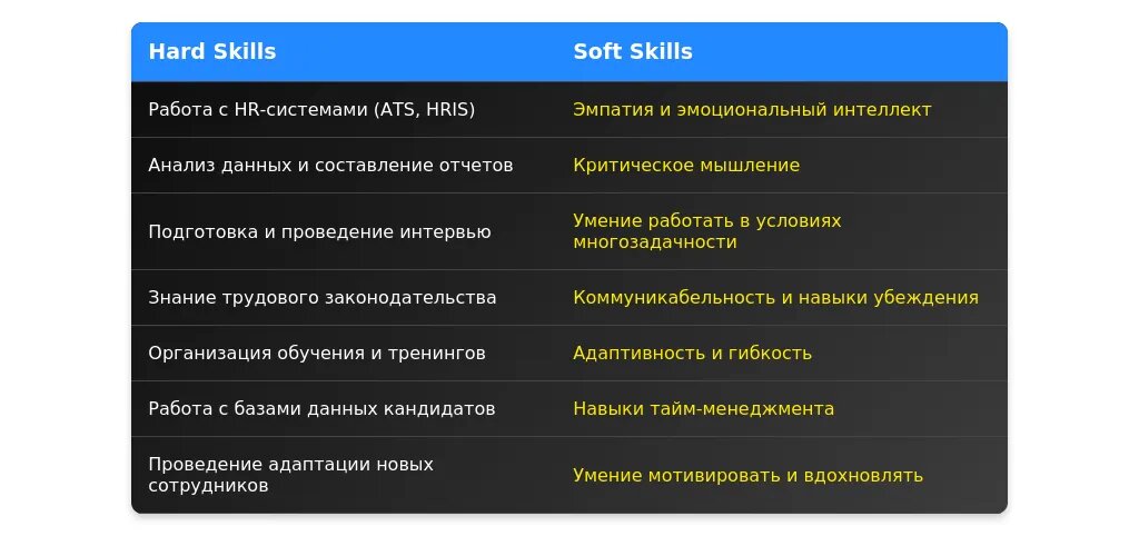 - Подбор персонала: "опыт проведения собеседований", "работа с ATS-системами", "поиск кандидатов".