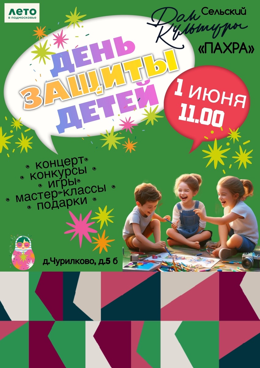 ✨ ПРИГЛАШАЕМ ДЕТЕЙ 🙌 🎈«ДЕТСТВО - СТРАНА СЧАСТЬЯ»🧸 Дорогие друзья, приглашаем вас 1 июня на игровую программу, посвященную международному Дню защиты детей 👧🧒 Вас ждет праздничный концерт, мастер-классы, продажа вкусных пряников , игровая программа и прочие развлечения 🫶 🚫 Возраст: 0+ 📆 01.06.2025🕒11:00 🏢 Сельский дом культуры (СДК) «Пахра» 📍 г.о.Домодедово, дер.Чурилково, ул.Чурилково, д.5Б 💰 Вход свободный❗️ ✅ Мероприятия Домодедово https://dzen.ru/id/66f10385cc4c5a16f7b5fb02 http://vk.com/domodedovo_events http://dzen.ru/domodedovo_events
