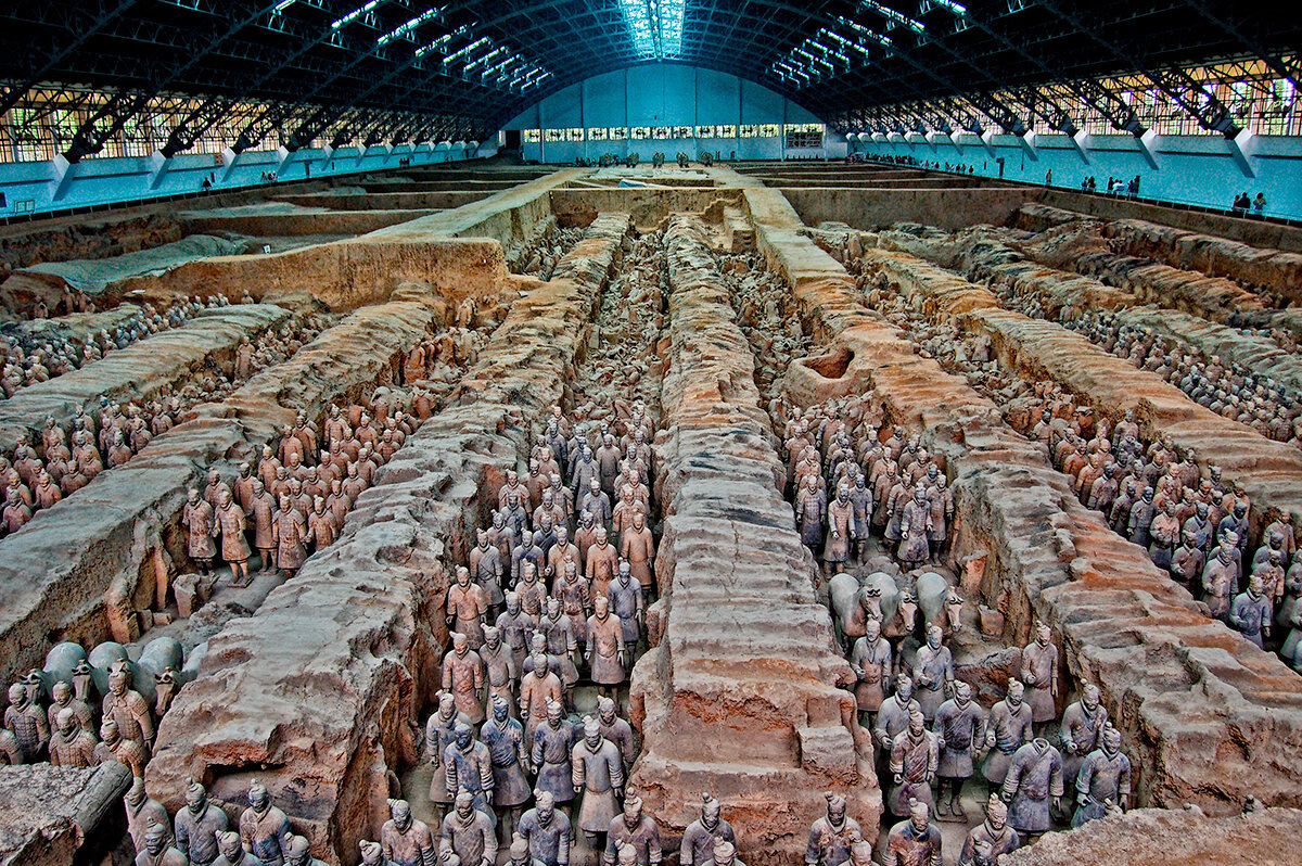 Терракотовая армия — это одна из самых удивительных археологических находок XX века, открывшая перед миром величие древнекитайской цивилизации. Расположенная недалеко от города Сиань в провинции Шэньси, армия насчитывает тысяч солдат, свидетелей величия первого императора Китая, Цинь Шихуанди. Терракотовая армия была случайно обнаружена в 1974 году местными крестьянами, которые бурили колодцы. Вскоре стало очевидно, что они наткнулись на одно из самых великих археологических открытий в истории. Раскопки, начатые после этого, открыли мир терракотовых солдат, лошадей и колесниц. Каждая фигура в терракотовой армии изготовлена вручную с поразительной внимательностью к деталям. Войны различаются по росту, одежде и военному снаряжению, что отражает кастовую структуру армии: Терракотовая армия охватывает не только военные аспекты, но и отображает культуру и технологии того времени, включая военное вооружение и строй системы. Терракотовая армия не только демонстрирует величие военной силы древ