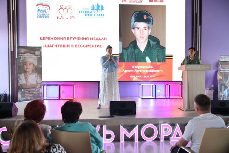 Приемным родителям погибшего участника СВО вручили медаль «Шагнувши в бессмертие»