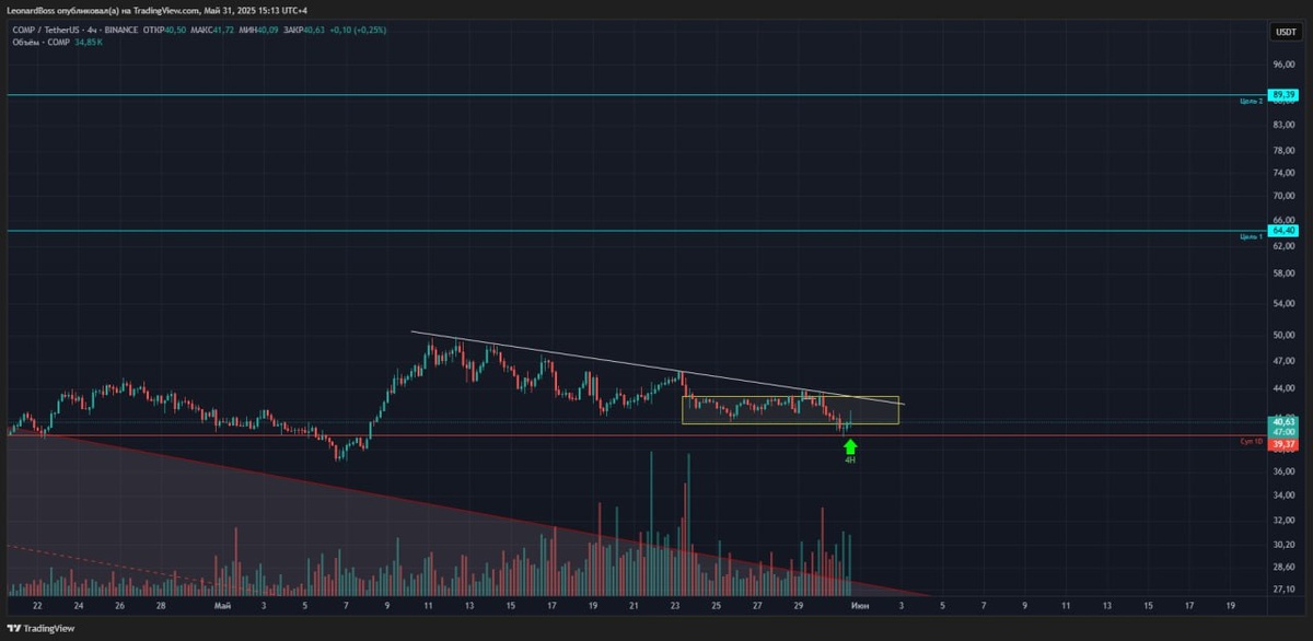 #COMP 👀👀👀 ⚠️Сильного роста не было, соответственно не было сильного падения! Накопления выхода не показывали. Один из моих инвест активов, с которого я уверен, что заберу отличный профит. Для тех, кому страшно, можно делать вход по выходу вверх и закрепу из локального накопления, но это будет уже через 10% роста!! P.s. у него очень позитивный график доминации в зачаточной разворотной формации. "Позабыт, позаброшен!!" = скоро напомнит о себе!!