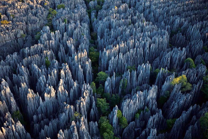 В Китае находится «Каменный лес» — природный парк, где острые скалы торчат из земли как застывшие деревья. Всё это результат древнего извержения вулкана и эрозии.