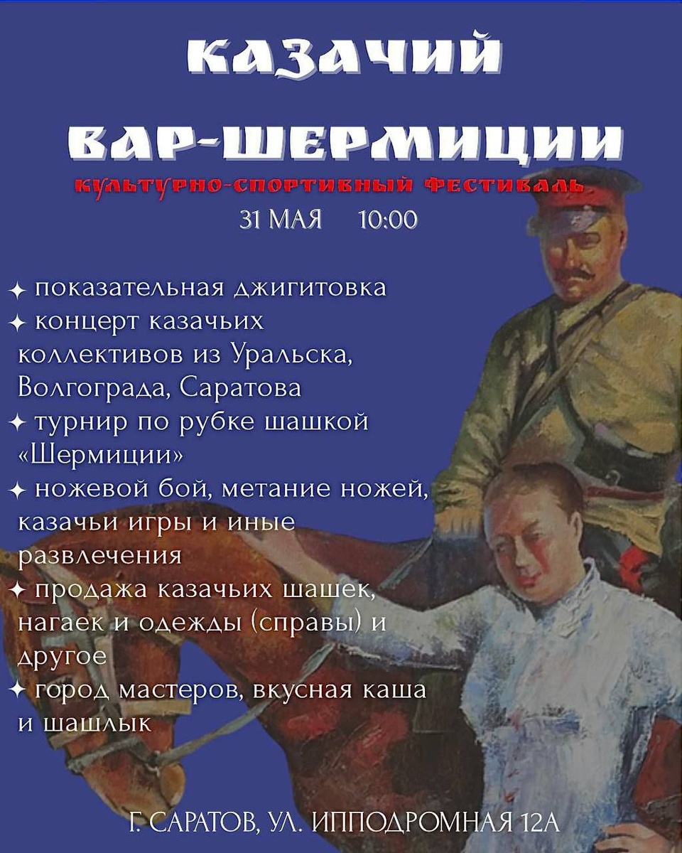 Сегодня Казачий Вар Масштабное событие, танцы , пляски, оружие, еда , песни , кони, все как я люблю. У меня Казачья кровь и предки мои славные войны, пращур Славный Воин Саава Мищенко 1669 году выехал с Запорожья