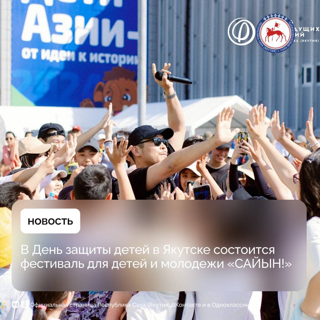 Ежегодный фестиваль «САЙЫН!» пройдет в это воскресенье, 1 июня, на стадионе «Туймаада» в Якутске. 🔹 Фестиваль традиционно организовывается в День защиты детей и является важной площадкой для раскрытия талантов и способностей юных участников. Здесь дети смогут проявить себя в различных областях науки, искусства, спорта и креатива. Вход свободный. 🔹 В течение дня участники смогут посетить мастер-классы, конкурсы, квесты, игры, которые не только развлекают, но и способствуют развитию навыков и интересов детей. Просмотр и отбор детей проведут Якутская балетная школа им. А. и Н. Посельских и Высшая школа музыки Республики Саха (Якутия) им. В.А. Босикова. 🔹 Также участники фестиваля могут пройти исследование на аппарате для определения состава тела и уровня тренированности спортсмена «Медасс». По направлению креатива ребята смогут сделать брелки на 3D-принтере и рисовать на шоперах, изготовят национальные украшения – «Туораах ытарха». 🔹 С 12:45 ч. планируется концерт учащихся Высшей