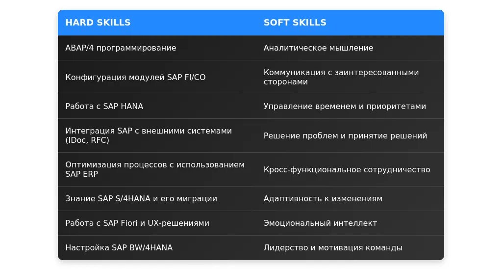 После: "SAP FI/CO, SAP SD, разработка на ABAP, оптимизация SQL-запросов, знание английского языка (Upper-Intermediate)."