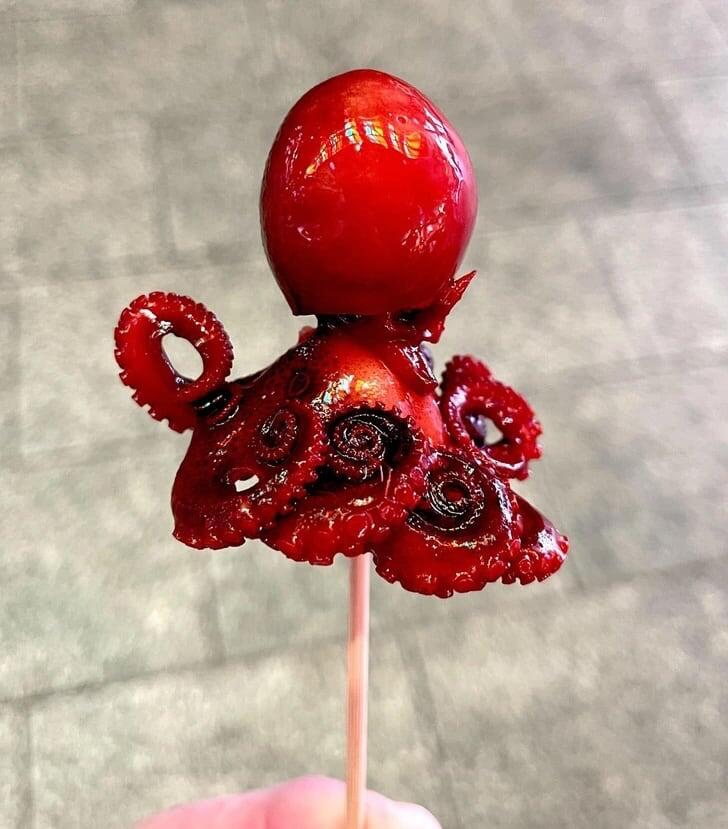 Некоторые блюда кажутся очень странными. Впрочем, так оно и есть. Популярный перекус в Японии – осьминог на палочке. Называется Тако тамаго. Японцы любят его за то, что это белковый "топливо" — сытно, но не тяжело. Тайцы заменили сосиску на мороженное:). Готовят мороженное из четырех ингредиентов: кокосового молока, воды, пальмового сахара и листьев пандана. И всё это подаётся в зелёной булочке с липким рисом, как сытный уличный перекус. Представьте себе ситуацию: в школе висит объявление, в котором написано, что мальчики до 10 лет могут помочиться в специальные вёдра и получить за это деньги. Такие объявления можно встретить в сельских школах провинции Чжэцзян в Китае. Собранную таким образом мочу используют для варки яиц. Яйца вываривают в моче целый день, пока не треснет скорлупа. Так получается блюдо под названием Тунцзыдань. Опять японцы отличились. Вот есть у них мания смешивать различные продукты, которые ну совсем не сочетаются:). Выпускают этот шоколад в городе Сидзуока. Печ