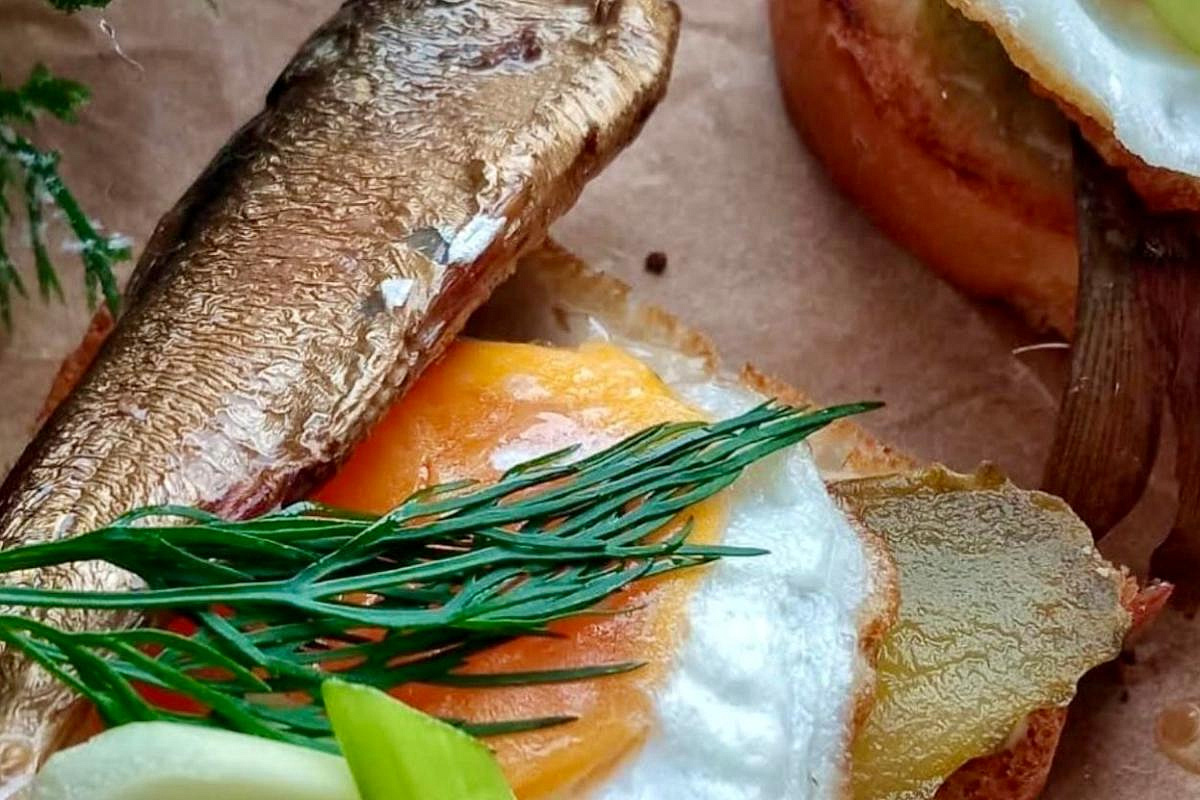 Мини-бутерброды со шпротами и мини-яичницей Этот