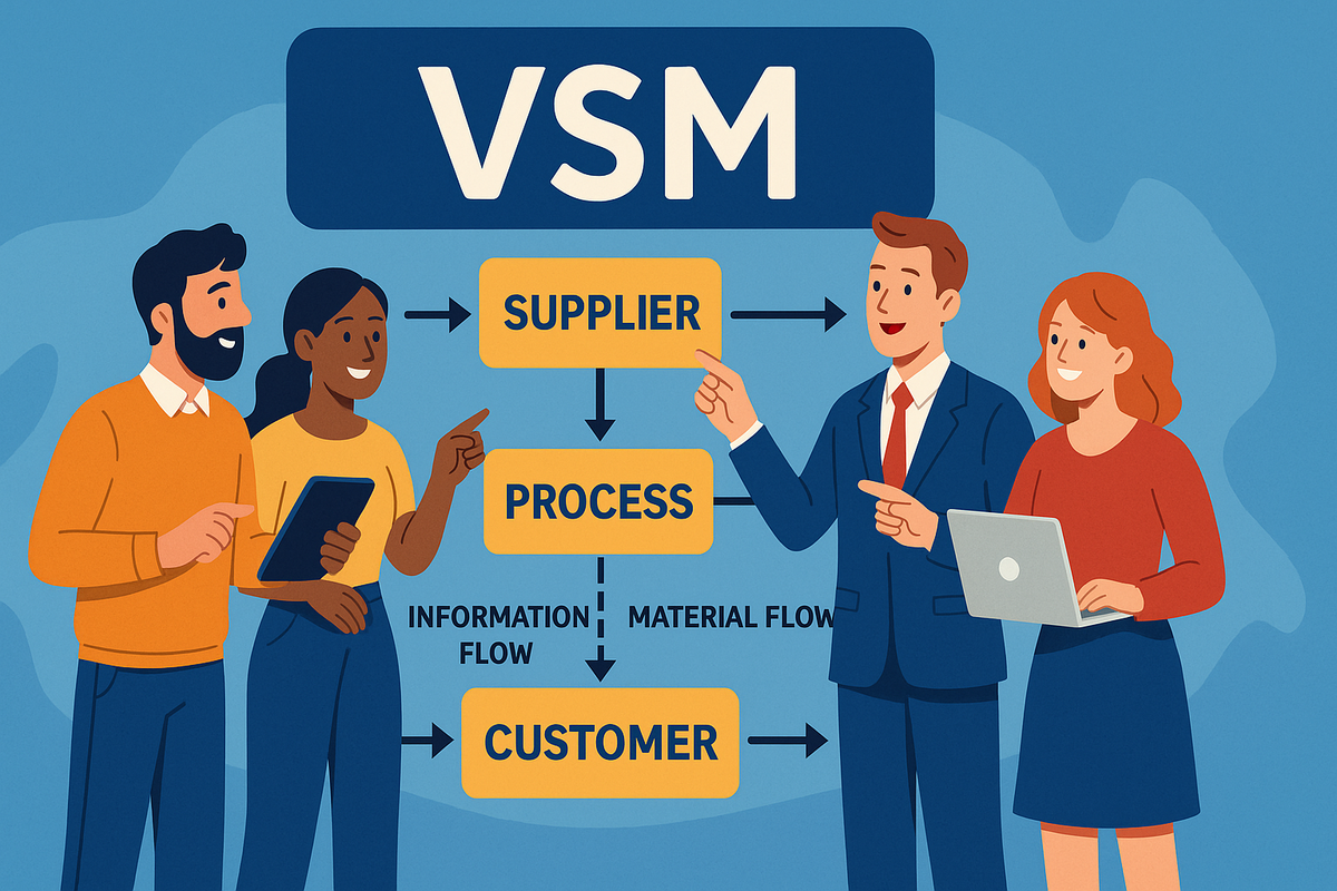 После диагностики текущего состояния в Lean-трансформации наступает важный этап — проектирование будущего потока. Это тот самый момент, когда можно не просто улучшать старое, а выстроить процесс заново, с нуля, без лишних шагов и потерь. Как подойти к этому грамотно? Когда вы видите, как работает процесс сейчас (As-Is VSM), важно не застрять в привычном. Проектирование To-Be VSM — это возможность представить, каким должен быть поток создания ценности в идеале. Без лишнего, с чётким ритмом и минимальными задержками. Главная цель — убрать всё, что не создаёт ценности, и выстроить последовательность действий, которая отвечает интересам клиента. Это не фантазия, а практичный шаг: вы задаёте направление для реальных изменений. Начинайте с конца — с потребностей клиента. Какой результат он хочет, за сколько времени и в каком качестве? Дальше отталкивайтесь от этих ожиданий и шаг за шагом стройте процесс так, чтобы каждая операция шла по логике потока, а не ради внутреннего удобства. Использу