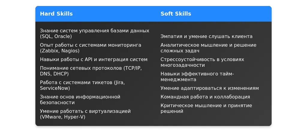 После адаптации: "Навыки работы в команде, стрессоустойчивость, умение быстро решать сложные технические задачи."