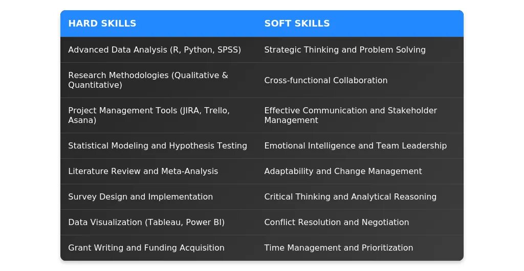 При анализе вакансии для позиции Research Manager важно обращать внимание на ключевые требования, которые делятся на обязательные и желательные. Обязательные требования обычно включают наличие высшего образования, опыт управления исследовательскими проектами, знание методологии исследований и инструментов анализа данных. Желательные требования могут включать навыки работы с конкретными программами (например, SPSS, R), опыт в определенной индустрии или знание иностранных языков.