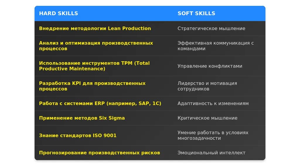 После адаптации: "Навыки анализа производственных данных и выявления узких мест".