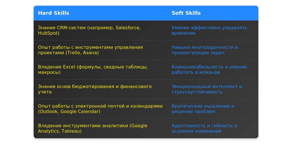 После: "Навыки: работа с Excel (продвинутый уровень), управление проектами, коммуникация."