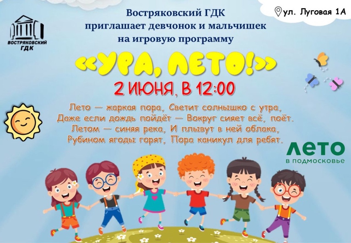 ✨ 📆 02.06.2025🕒12:00 🏢 Востряковский городской Дом культуры (ГДК) 📍 г.о.Домодедово, мкрн.Востряково, ул. Луговая,д.1а ✅ Мероприятия Домодедово https://dzen.ru/id/66f10385cc4c5a16f7b5fb02 http://vk.com/domodedovo_events http://dzen.ru/domodedovo_events