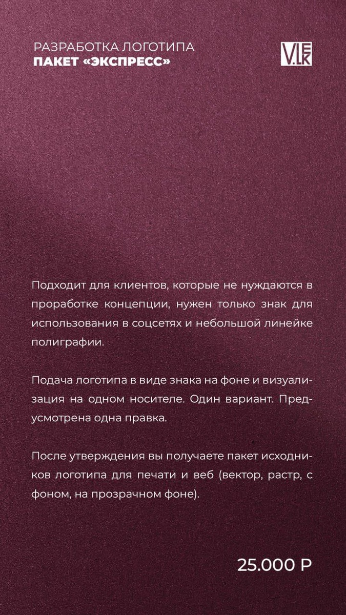 Мы скорректировали цены на разработку логотипа и комплексный брендинг, чтобы сохранить высокое качество и глубину проработки вашего бренда. Неизменными остаются наше внимание к деталям и стремление создать бренд, который будет работать на вас.