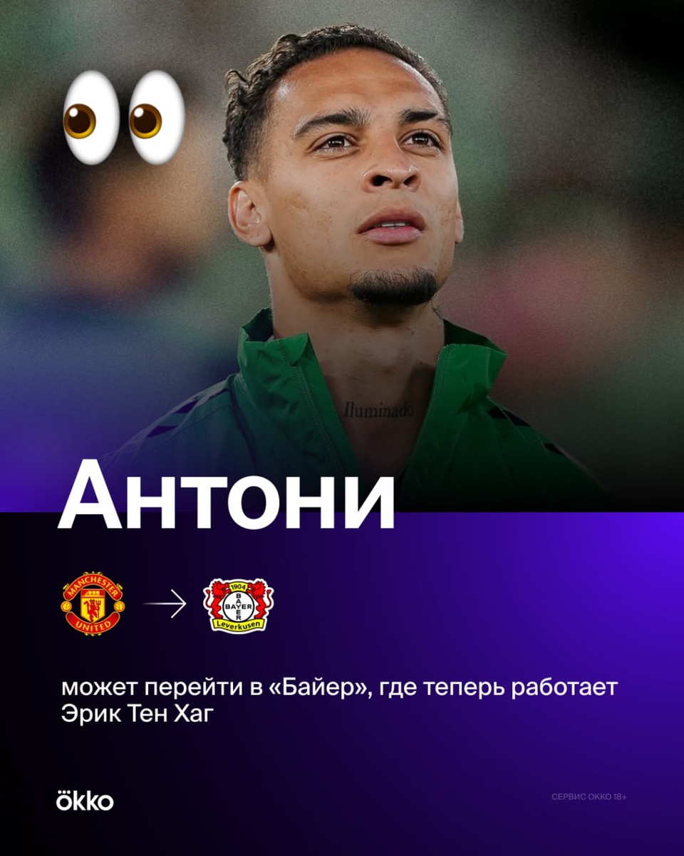 🐐 Антони интересен «Байеру». А мы и не сомневались. Недавно немецкий клуб возглавил Тен Хаг. Эрик работал с бразильцем в «Аяксе» и «МЮ». Теперь Kicker пишет о возможном воссоединении в Леверкузене. Немцы ищут замену Виртцу, который вот-вот уйдет из «Байера». Еще пишут про интерес к Гарначо и Шерки.