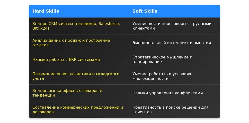 - Ключевые навыки, связанные с продажами и работой с клиентами.