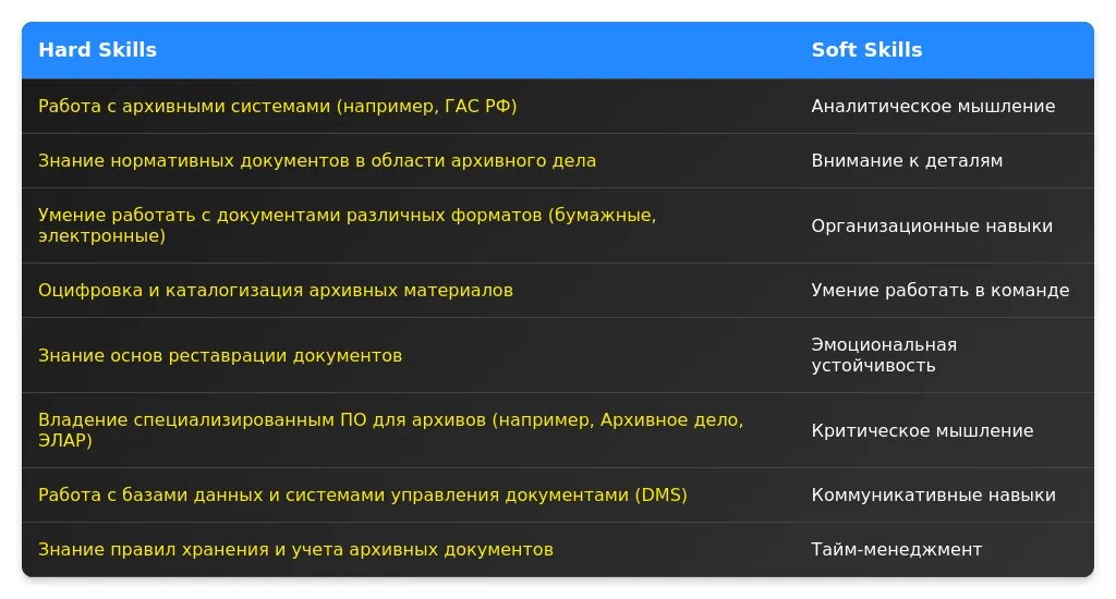 Релевантные навыки для архива.