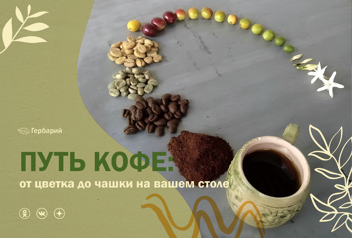 Когда мы подносим к губам чашку ароматного кофе, мало кто задумывается о долгом пути, который проделал этот напиток, прежде чем оказаться у нас на столе. На иллюстрации этот путь представлен в виде красивой цепочки: от цветка до зрелого плода, от зелёного зерна — до свежесваренного кофе. Давайте пройдём его шаг за шагом. Всё начинается с изящных белых цветков кофейного дерева — обычно сорта Coffea arabica или Coffea canephora (робуста). Арабика имеет 44 хромосомы, она более уязвима к болезням, морозу и вредителям. Робуста — с 22 хромосомами, отличается высокой устойчивостью к вредителям, жаре и влажности. Поэтому её легче и дешевле выращивать в промышленных масштабах. Арабика содержит около 1,2% кофеина. Робуста — около 2,2%, то есть почти в два раза больше. Именно кофеин даёт робусте её "жесткость" и устойчивость к вредителям. Арабика ценится выше: считается, что у неё более изысканный вкус, меньше горечи. Конилон — это разновидность робусты, ее бразильская локальная популяция. То е
