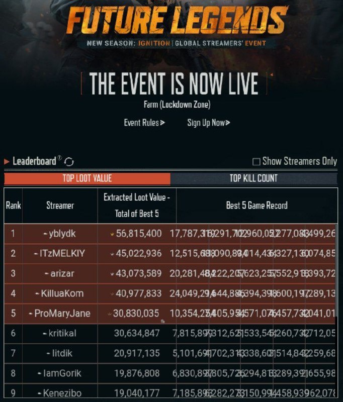 В таблице опять миллионеры и дисководы, за пол дня турика налутали больше, чем вес мой стеш на аккаунте 😄 Через 2-3 часика уже буду дома, сварю ужин, приму ванну и будем врываться в борьбу за лидерборд 💥 ССЫЛКА НА ТАБЛИЦУ РЕЗУЛЬТАТОВ: https://www.arenabreakoutinfinite.com/kcdgevent/index.html?lang=ru