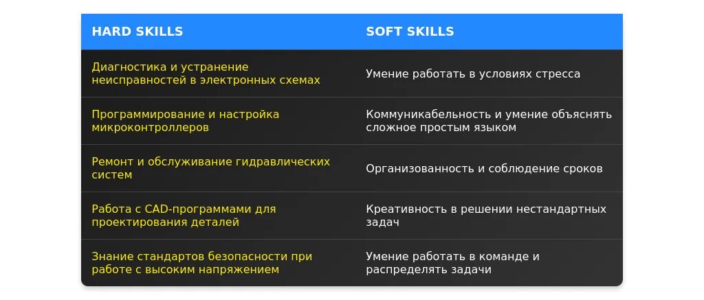 После: Диагностика и ремонт гидравлических систем, работа с программным обеспечением для диагностики оборудования. Конкретика и соответствие вакансии.