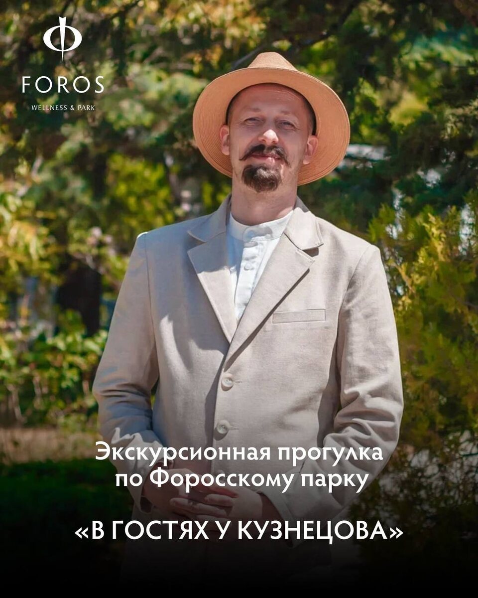 🎭В театрализованной экскурсии «В гостях у Кузнецова» участвуют герои, с которыми мы будем постепенно вас знакомить. Напомним, что экскурсия проходит при поддержке Президентского фонда культурных инициатив. А теперь, знакомьтесь! Александр Кузнецов — купец и “чайный король” из Фороса, в конце XIX века основал крупнейшую чайную компанию в России. Построил знаменитый дворец в Форосе и церковь Воскресения на утёсе. Благодаря ему Форос стал известным курортом. Александр Григорьевич был гостеприимным хозяином и с удовольствием принимал дорогих гостей. После прогулки в тени кедров и сосен всех приглашали на чаепитие. За чашечкой ароматного чая велись неспешные беседы, а все вокруг наполнялось умиротворением и теплотой от дружеского общения. 👉Регистрация 📅 Даты проведения: май – сентябрь 2025 👥 Формат: групповая (от 19 человек) 💰 Групповое участие бесплатное (грантовая программа) Погрузитесь в историю – почувствуйте дух эпохи! 🌿 #Фондкультурныхинициатив #грантдлякреативныхкоман
