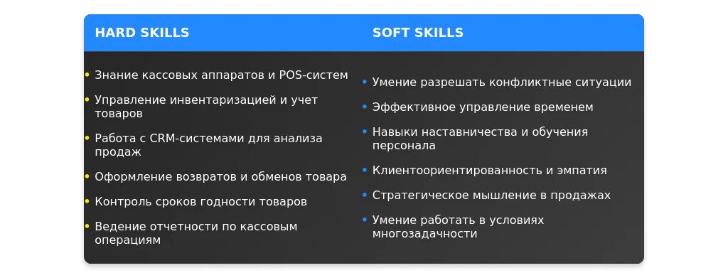 После: "Опыт работы с кассовым оборудованием, знание программ 1С и MS Office, навыки управления командой."