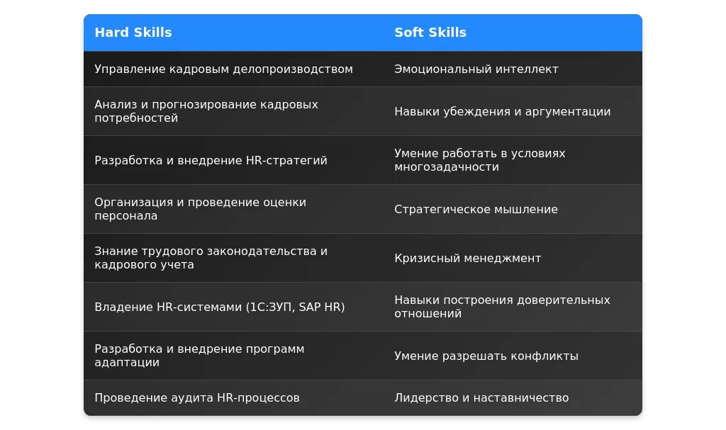 После адаптации: "HR-аналитика, разработка KPI, управление персоналом, знание трудового законодательства."