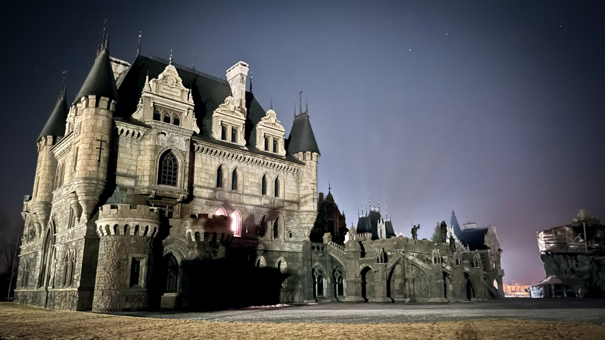 Величественные скульптуры рыцарей, грозных грифонов, загадочных горгулий и огнедышащих драконов застыли в каменном страже. Фонарные столбы, уже погасшие в этот поздний час, словно хранили в себе воспоминания о мягком золотистом свете, который когда-то окутывал замковые владения, наполняя их теплом и таинственным очарованием.