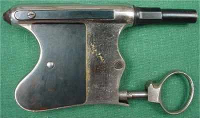 Итальянец Кателло Трибуцио получил первый патент на свой пистолет – «молнию» 17 сентября 1889 года, он был действителен в течение трех лет с правом его дальнейшего продления, в 1890 году в Англии инженер запатентовал вторую модель, а в 1891 году получил патент в Италии. В качестве перового изобретения значился «затворный механизм для винтовок и пистолетов», хотя винтовок Трибуцио с таким затвором ни кто не видел. Собственно вряд ли существуют и пистолеты с таким механизмом затвора, каким он описывается в патенте. В первоначальном варианте спусковой крючок представлял собой вертикальный рычажок, похожий на рычаг пистолета Жака Роншоуса Le Merveilleux, патент на который был выдан на несколько месяцев раньше, 19 апреля 1889 года. Это было время, когда пистолеты «экспандеры», работа механизма которых была основана на сжимании и разжимании ладони, были очень популярны во всем мире благодаря своей надежности и компактности. Трибуцио не пытался копировать пистолет Роншоуса, если присмотреться