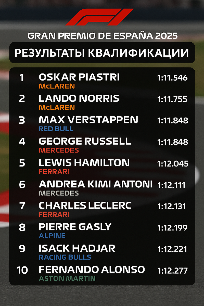 Гран-При Испании снова показала, что всё может измениться за одну квалификацию. Сегодня, 31 мая 2025 года, на легендарной трассе Каталунья в Барселоне разыгралась настоящая драма: Оскар Пиастри (McLaren) вырвал поул, Ландо Норрис — второй, а Макс Ферстаппен (Red Bull) — лишь третьим! Давайте разложим всё по полочкам: кто удивил, кто разочаровал, и какова раскладка перед гонкой этого воскресенья в 16:00 по Мск.