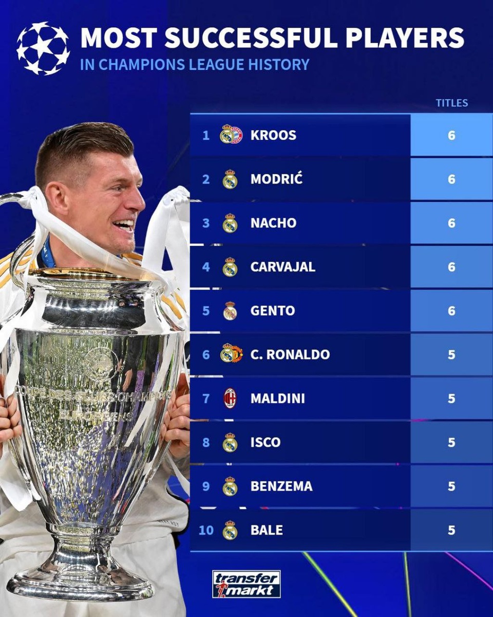 Самые титулованные игроки в истории Лиги Чемпионов