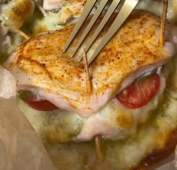 Количество ингредиентов берём соответственно необходимому количеству порций, ориентируясь на свой вкус. Куриное филе разрезаем вдоль на две равные части. Солим и перчим. Одну половинку филе смазываем соусом "PЕSТО". Выкладываем сыр "Моцарелла", нарезанный кружочками. Сверху добавляем томаты, нарезанные кружочками, и листья шпината. Закрываем второй половинкой и скрепляем зубочистками. Смазываем оливковым (или растительным) маслом, добавив чуток копчëной паприки. Форму для запекания застилаем пергаментной бумагой, смазав растительным маслом. Выкладываем наши заготовочки на бумагу и запекаем 35-40 минут в духовке при температуре 180 градусов. Всем мира, добра, красоты!