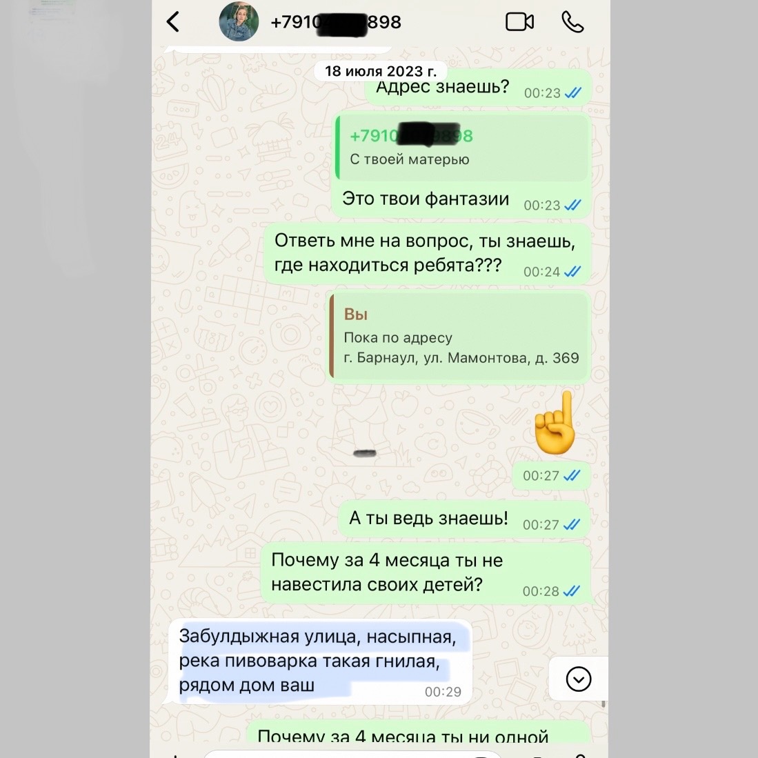 Но Юля только кричала:«отошла от детей!»,«дети, ну-ка быстро ко мне!», снимала видео, которое впоследствии обрезала, оставив часть, с парой ласковых слов детям. Мне повезло, в редакцию amic она успела предоставить полное видео, и у меня есть возможность выложить недостающие части снятого ею 02.10.2023г. видео здесь⬇️