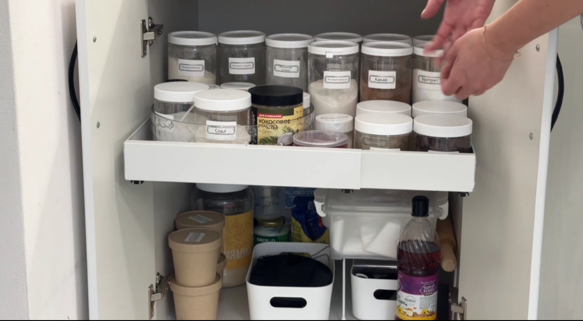Для меня очень важно удобство готовки и экономия времени. Знаю, насколько сильно раздражает каждый раз проводить раскопки ингредиентов и нужных форм. Десять раз подумаешь - начинать печь или нет.😅 Ведь дело не только в рецептах. Скорость готовки очень зависит от того, как все хранится на кухне. И чтобы вам хотелось как можно чаще делать ПП десерты, решила показать организацию моих полок👀 Недавно я провела очередную модернизацию, и теперь все безумно удобно и быстро, и всегда порядок. Выдвижная полка оказалась настоящим чудо-гаджетом. На ней храню банки - все необходимое под рукой, даже приседать не приходится. ✨Полка выдвижная ozon.ru/t/4CeA1aK Для сухих ингредиентов приобрела наборы прозрачных стеклянных банок с крышками. В банки побольше пересыпаю продукты, которые продаются в большой фасовке: все виды муки, крахмал, какао, эритрит, разрыхлитель и т.п. Первым рядом ставлю то, что использую часто, а сзади - то, что нужно редко. Баночки поменьше нужны, чтобы не хранить