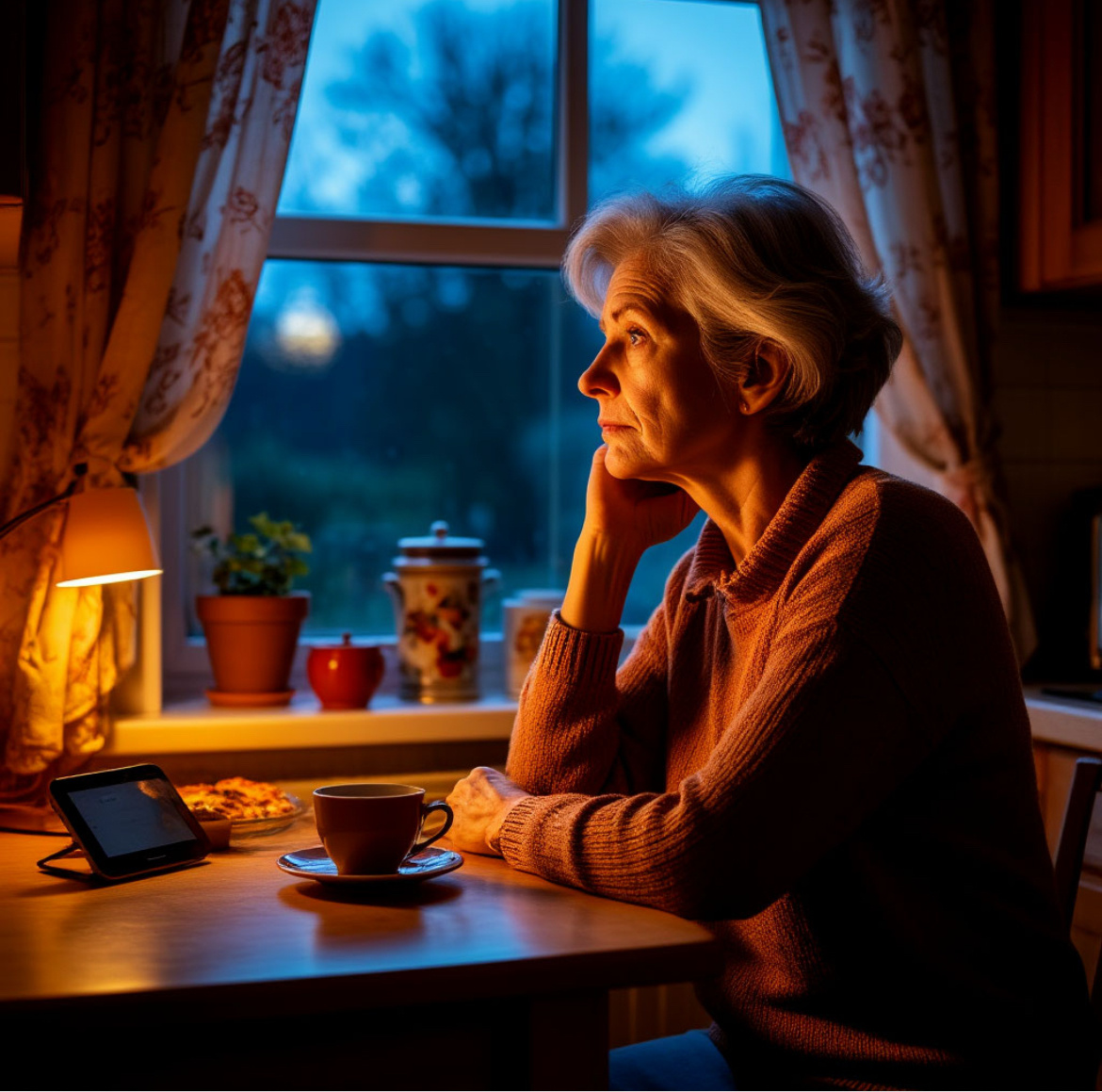 В доме пахнет пирогом с яблоками. В полуприкрытое окно устало вползает вечер, будто и сам сомневается — стоит ли ему здесь быть. На кухне тихо булькает чайник — шум этот родной, спокойный, словно шёпот из детства.