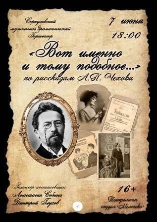 ✨ Спектакль «ВОТ ИМЕННО И ТОМУ ПОДОБНОЕ…» 📚по мотивам известных рассказов А. П. Чехова, раскрывающих нам самые неожиданные стороны отношений мужчины и женщины. 🎉Играют для вас актеры Театральной студии "Мелихово", с участием актера Серпуховского театра Дмитрия Глухова. 🏆Спектакль «Вот именно и тому подобное...» стал лауреатом I степени на 81-м фестивале-конкурсе «Слияние культур» в Казани. ⏳ 1 час 20 мин. 🚫 Возраст: 16+ 📆 07.06.2025 🕒 18:00 🏢 Серпуховской музыкально-драматический театр 📍 г. Серпухов, ул. Чехова, д. 58/27 💰 Цена от: 500 до 1000 ₽ 🎫 Купить билет: https://clck.ru/3MLvDN #webСерпухов ⭐Разместить публикацию ⭐Поддержать канал голосом ✅ Мероприятия Серпухов https://dzen.ru/id/66f01c6eb4c6fe60c9ca1608 http://vk.com/serpukhov_events http://dzen.ru/serpukhov_events
