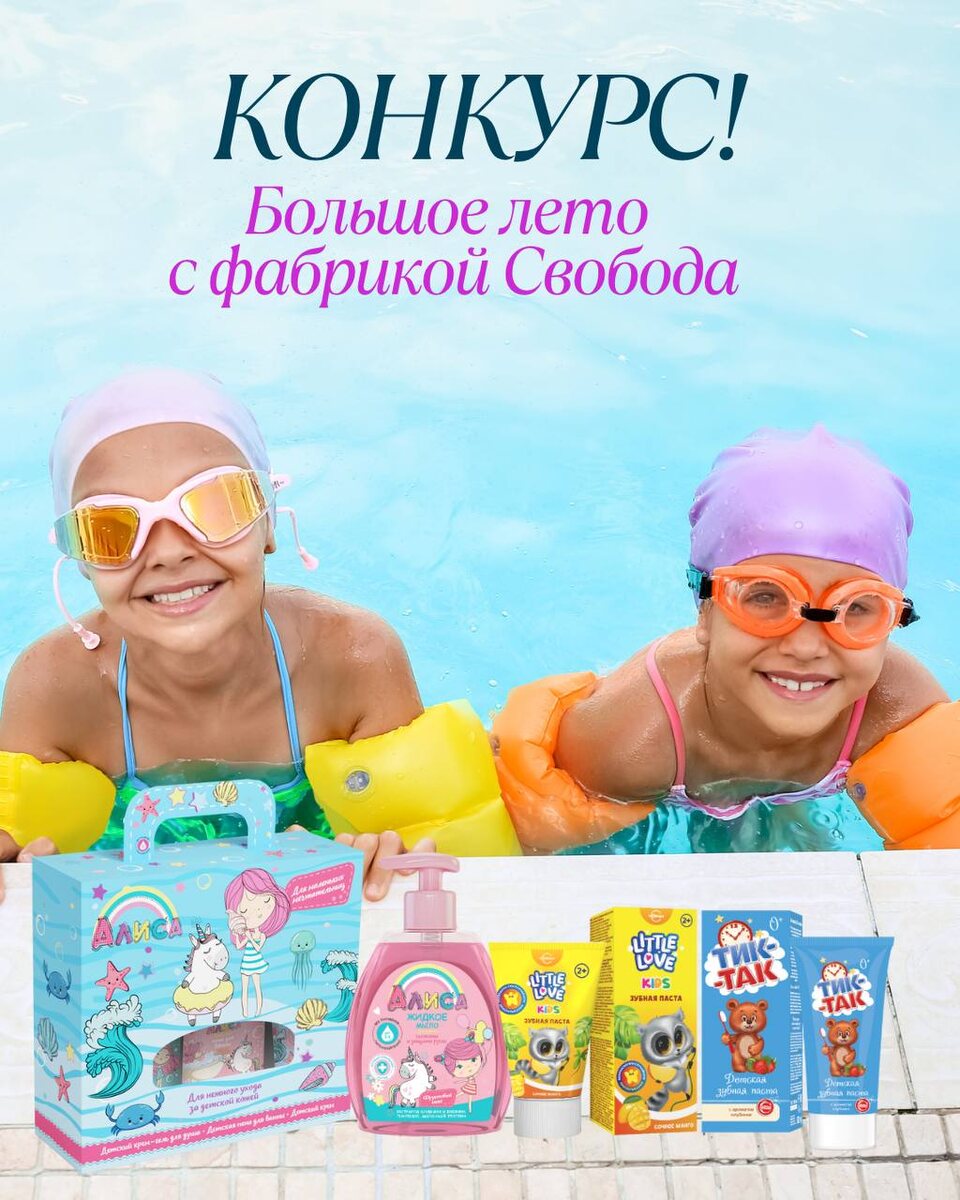 2. Поставьте лайк этому посту и сделайте репост себе на стену. 3. Сделайте фотографию или видео на летнем фоне с вашим ребенком (или детьми), на которой будет изображена детская продукция от компании Свобода. 4. В комментариях под этим постом прикрепите ваше фото или видео с любым детским средством от фабрики Свобода. Любой летний вариант (образ, пейзаж, Ваша творческая идея) с любимой детской косметикой от