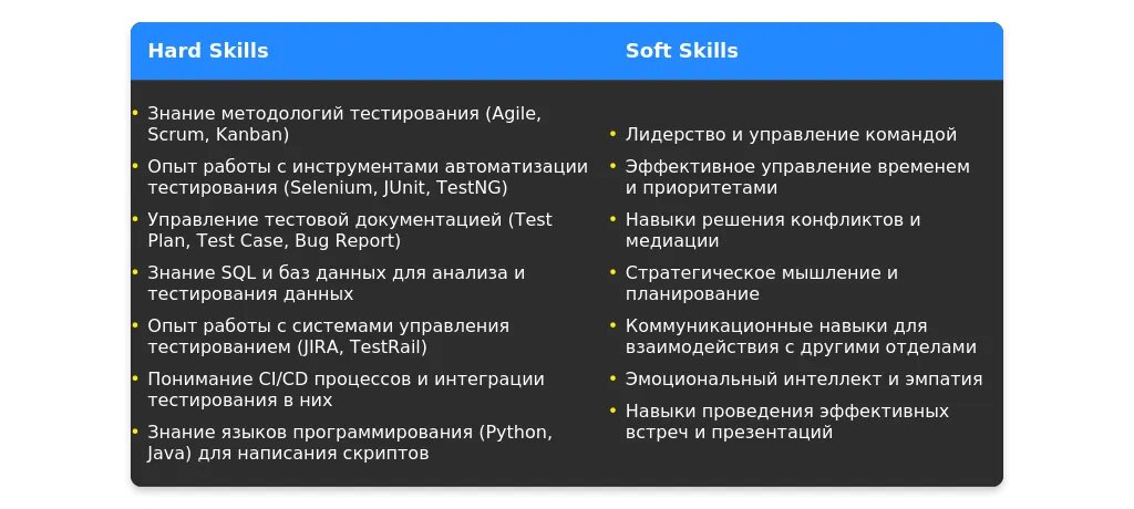 Для руководителя отдела тестирования важно показать свою экспертизу и достижения. Вот что можно указать: