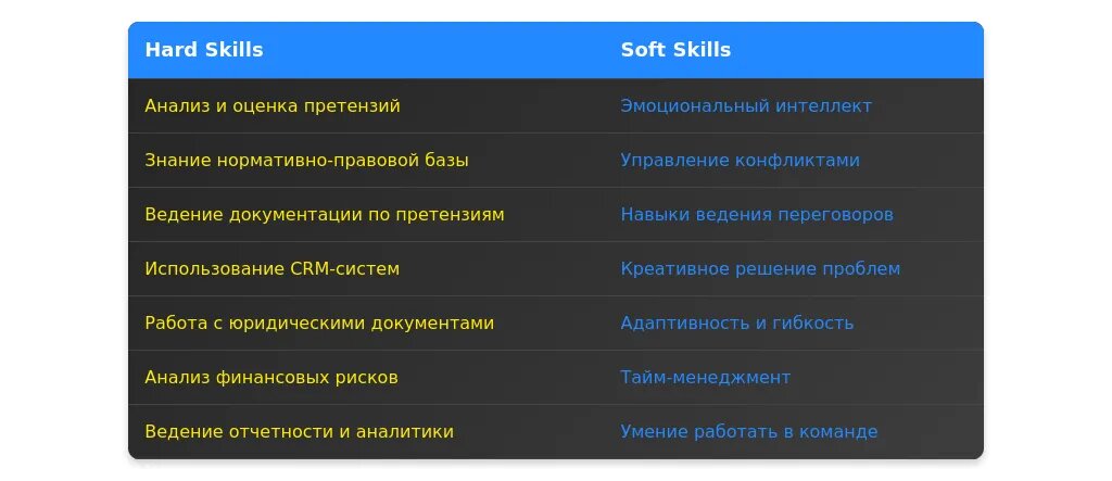 "Успешно урегулировал 95% претензий благодаря эффективным переговорам и клиентоориентированности."