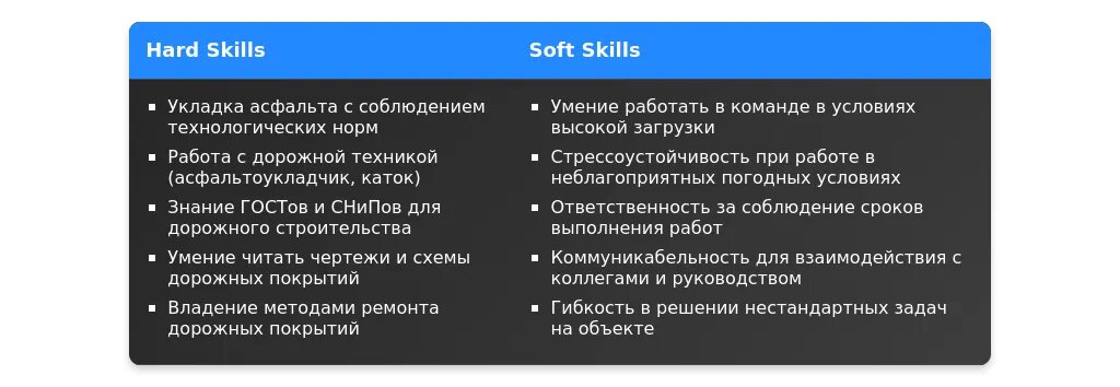 Работа с ключевыми словами в этом разделе заключается в использовании терминов, указанных в вакансии. Например, если работодатель упоминает "асфальтоукладчик", обязательно включите этот навык в резюме.