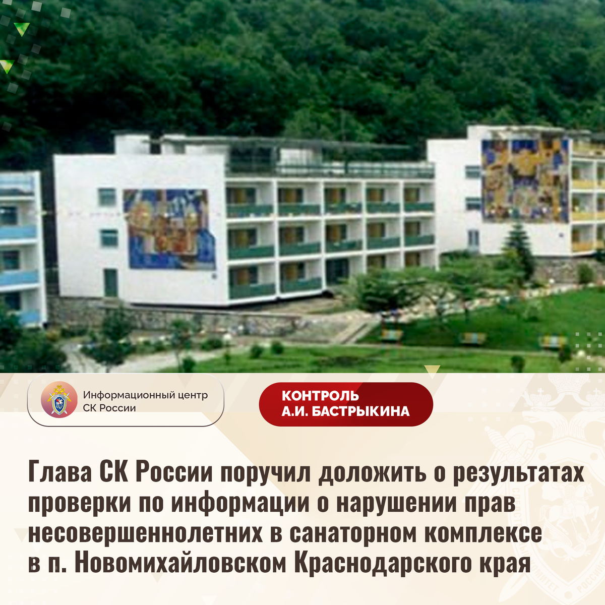 Глава СК России поручил доложить о результатах проверки по информации о нарушении прав несовершеннолетних в санаторном комплексе