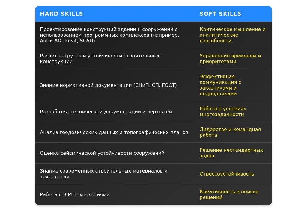 Анализ требований вакансии для профессии "инженер по зданиям и сооружениям"