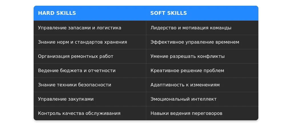 До: "Управление персоналом, контроль закупок, знание норм охраны труда."