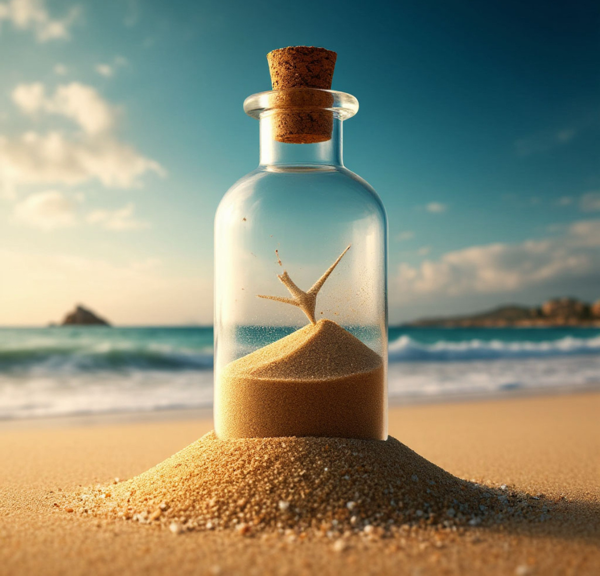 Бутылка. Необычная бутылка. Не изящная, не старинная, а простая, аптечная, с широким горлышком и плотной пробкой, обмотанной изолентой. Внутри нее – не вода, не лекарство, а песок. Не просто песок, а целая коллекция. Горсть из пустыни Вади Рам, где ветер пел сквозь скалы-великаны. Щепотка с пляжа Бора-Бора, такой мелкий, что казался розовой пудрой. Песчинки с Красной площади, прилипшие к подошве в день парада. Кусочек Сахары, унесенный в кармане штормовым ветром.