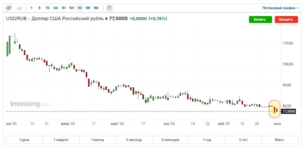 Курс доллара упал до 77,5 рублей в последние дни мая. Этому есть конкретные причины