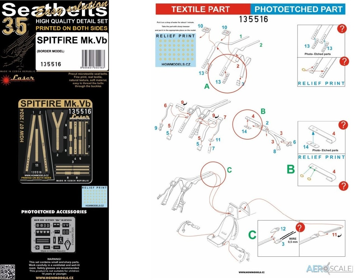 Чешская HGW Models выпустила привязные ремни пилота для модели Spitfire Mk.V в масштабе 1/35 от Border Model: Spitfire Mk.V Seatbelts (каталожный номер 135516)
