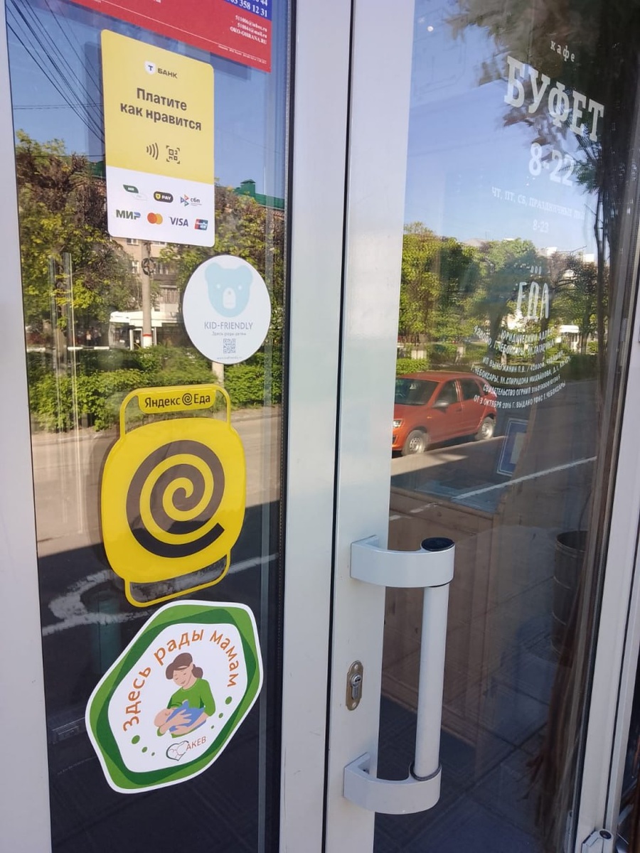 Инициатива АКЕВ #Здесьрадымамам набирает обороты и расширяет географию! В городе Чебоксары (Чувашская Республика) наклеена первая наклейка «Здесьрадымамам». В кафе «Буфет» вы можете покормить малыша за столом, откинувшись на уютном диванчике. Никто не сделает вам замечание за то, что вы кормите ребенка грудью. Персонал понимает, что ребенок может захотеть приложиться к груди в любое время и в любом месте, настроен доброжелательно и готов помочь при необходимости или просьбе матери. Благодарю руководство и персонал кафе за поддержку кормящих мам!