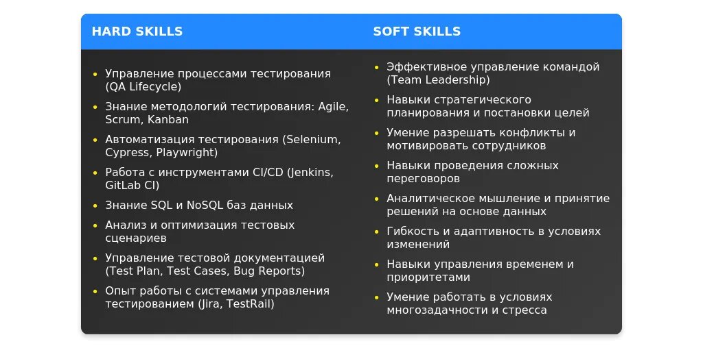 После адаптации: "Управление командами до 20 человек, стратегическое планирование тестирования, автоматизация процессов."